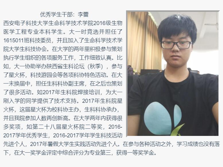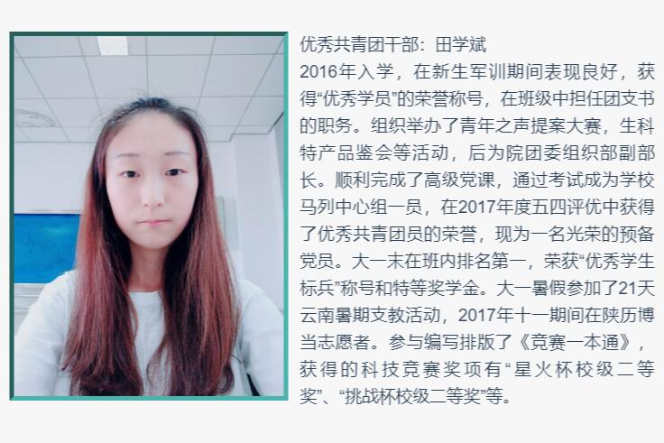为隆重纪念五四青年节,树立和宣讲先进典型,激励广大团员、学生勤奋学习、积极工作,院团委将在五四青年节之际展示一批优秀学生干部、优秀共青团干部和优秀共青团员的事迹。本篇内容是关于优秀学生干部和优秀共青团干部的事迹展示。