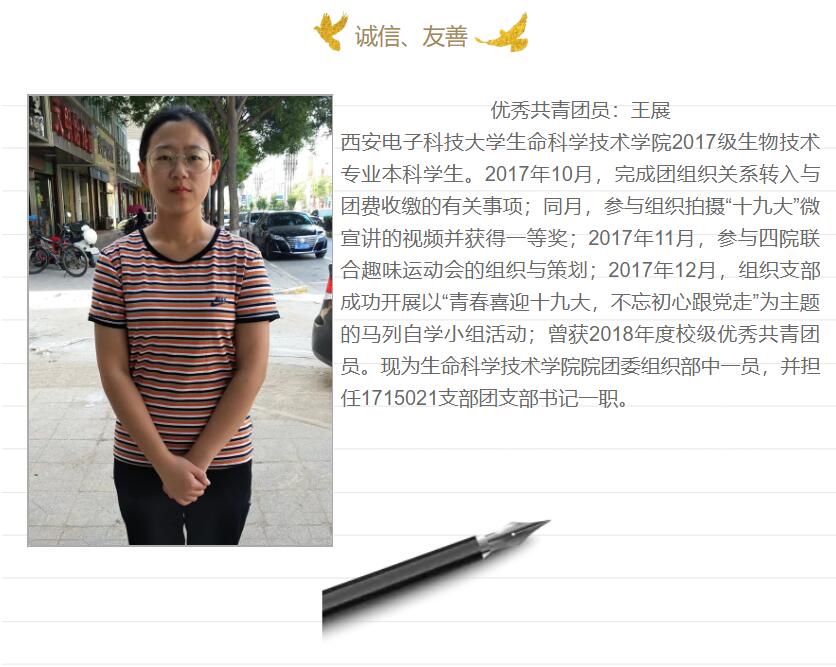 为隆重纪念五四青年节,树立和宣讲先进典型,激励广大团员、学生勤奋学习、积极工作,院团委将在五四青年节之际展示一批优秀学生干部、优秀共青团干部和优秀共青团员的事迹。本篇内容是关于优秀共青团员的事迹展示。