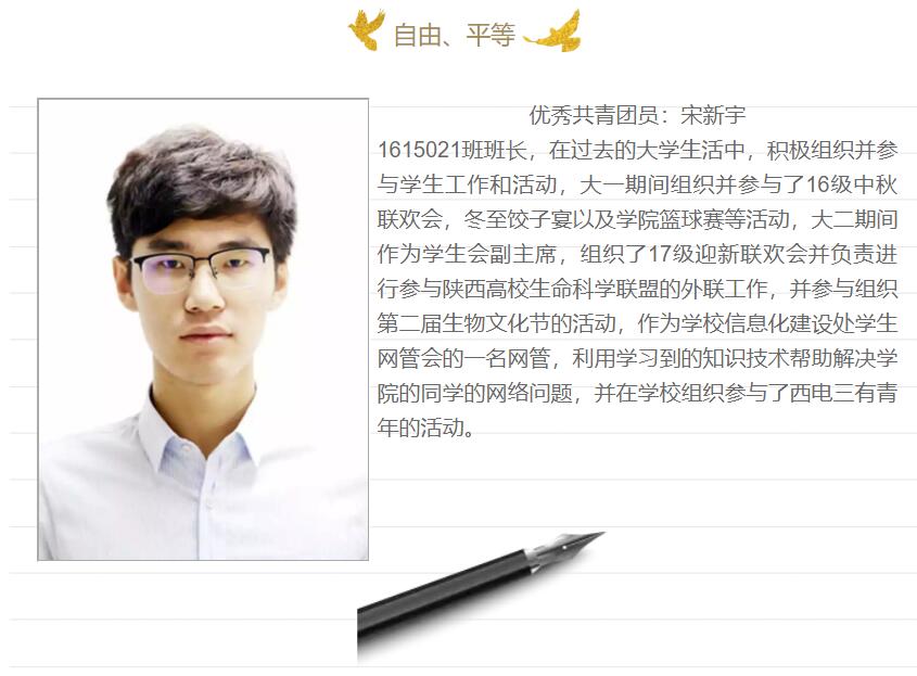 希望各位学生以六位优秀共青团员为榜样,凭借蓬勃向上的朝气、永不松懈的志气、开拓创新的锐气,在学业和各项工作中抓住机遇、实现目标,展现出西电新一代新年人的风范。