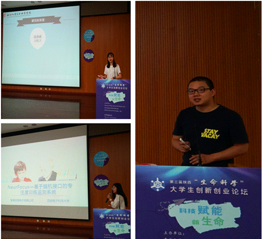 上午,awc777万象城娱乐官网的“基于脑机接口的专注度训练监测系统”项目、软件学院的“基于微流控芯片技术的乳腺癌早期筛查系统”项目、西北大学生命科学学院的“基于酶联免疫吸附实验原理应用凝集素检测流感易感人群方法的研究”项目的学生代表也进行了精彩分享。
