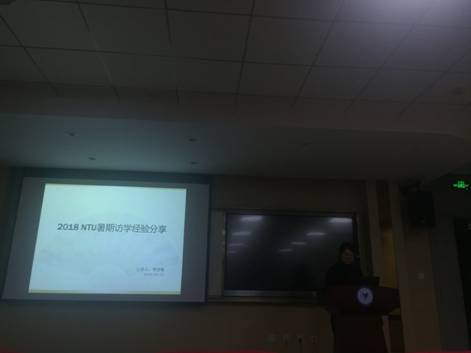 最后,由参加2018年新加坡南洋理工大学暑期访学的研究生代表黄慧敏同学分享了访学经验,她认为新加坡暑期访学项目提升了同学们的国际化视野,让同学们了解到世界一流大学的先进教学理念和方式,为同学们出国深造和开展国际合作交流打下了良好基础。