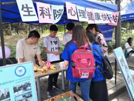 2019年5月23日下午,由生科院团委实践部组织的心理健康节外场活动在海棠餐厅门口成功举办。五月心理健康月,旨在提高大学生心理素质,营造一种积极向上的校园氛围。