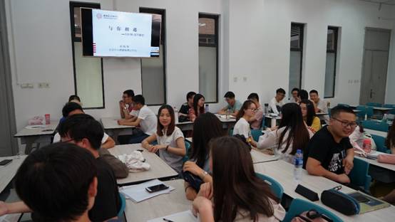 武成莉老师从人际关系讲起,让同学们在“串名字”游戏中体验人际交往的技巧,同学们在老师的鼓励下与不相识的邻桌同学交流,积极进行讨论,现场气氛十分热烈。
