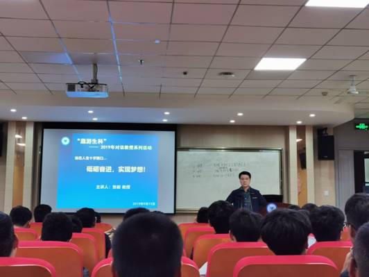 (通讯员:杨珂 陈伟燊)为使生科院大一新生更好更快地适应大学生活,增强对专业的认同感,9月15日晚上7点,生科院张毅教授为大一新生开展了“站在人生的十字路口—砥砺奋进,实现梦想”主题教育讲座。生科院党委副书记崔传贞,本科新生辅导员陈伟燊、研辅杨珂及生科院全体新生参加了此次讲座。