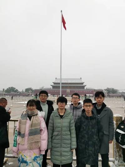 11月30日上午,访学团队师生在初雪滋润后的天安门广场上观看了升旗仪式,迎着朝阳冉冉升起的国旗在晴空中格外耀眼夺目,为大家注入了蓬勃朝气。