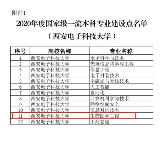 近日,教育部办公厅发布《教育部办公厅关于公布2020年度国家级和省级一流本科专业建设点名单的通知》(教高厅函〔2021〕7号),awc777万象城娱乐官网生物医学工程专业成功入选2020年度国家级一流本科专业建设点,这也是生科院首个国家级一流专业建设点。本次评选全国共有17所高校的生物医学工程专业入选国家级一流本科专业建设点,西电的生物医学工程是西北地区唯一入选专业。
