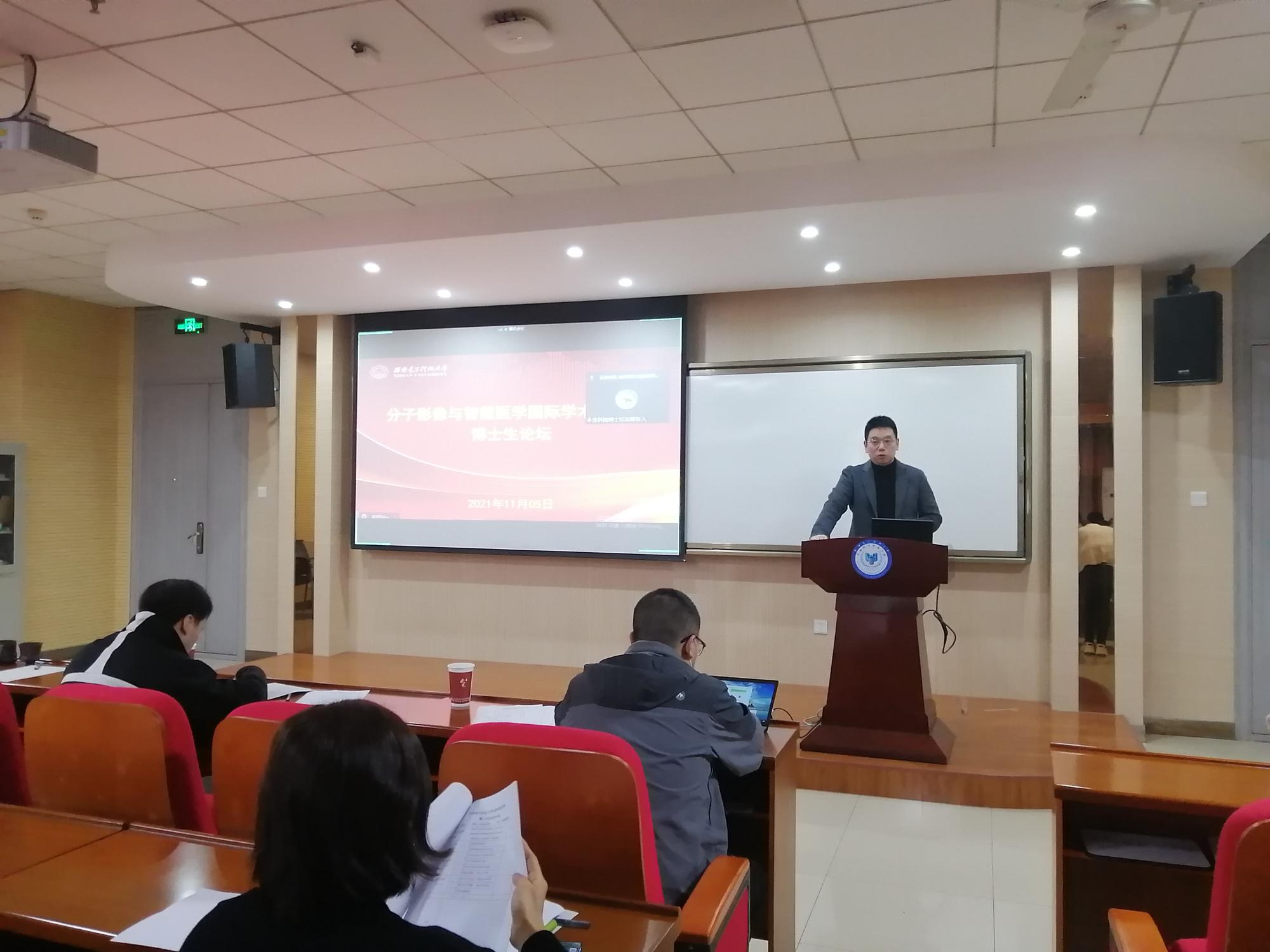 11月5日,分子影像与智能医学国际学术研讨会博士生论坛在西电南校区G楼成功举办。此次论坛聚焦分子影像、神经影像、人工智能医学大数据等领域学术前沿,开设了“分子影像与探针”和“智能医学”两个分论坛。论坛以线上线下相结合的形式举行,来自西电生科院的14名博士生做口头报告交流。论坛邀请了西北工业大学尚利教授、第四军医大学实验动物中心主任师长宏教授、陕西师范大学王筱冰教授、西北大学孙霞教授、西安交通大学白丽君教授以及awc777万象城娱乐官网导师代表作为专家评委进行点评指导,120余名研究生积极报名参加论坛。
