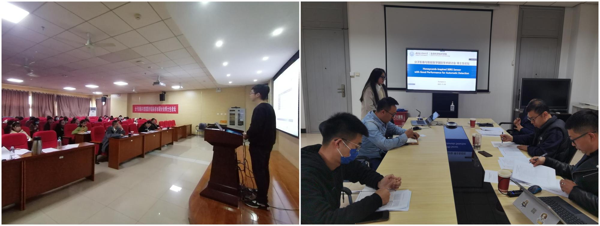 14位博士生根据自身研究课题进行了细致充分的准备,围绕研究背景、研究内容、创新点和展望等方面依次进行学术报告和交流,充分展示自身工作和研究成果,报告内容涉及影像引导肿瘤术中精准导航、肿瘤早期诊断、睡眠障碍治疗等多个生命健康领域的临床问题。报告结束后,与会专家从学术研究、论文写作以及如何进行学术汇报等方面进行了细致认真的点评,提出了中肯的建议。参会同学以求知、互学的心态认真聆听报告,踊跃提问交流。论坛现场气氛热烈,学术氛围浓厚。
