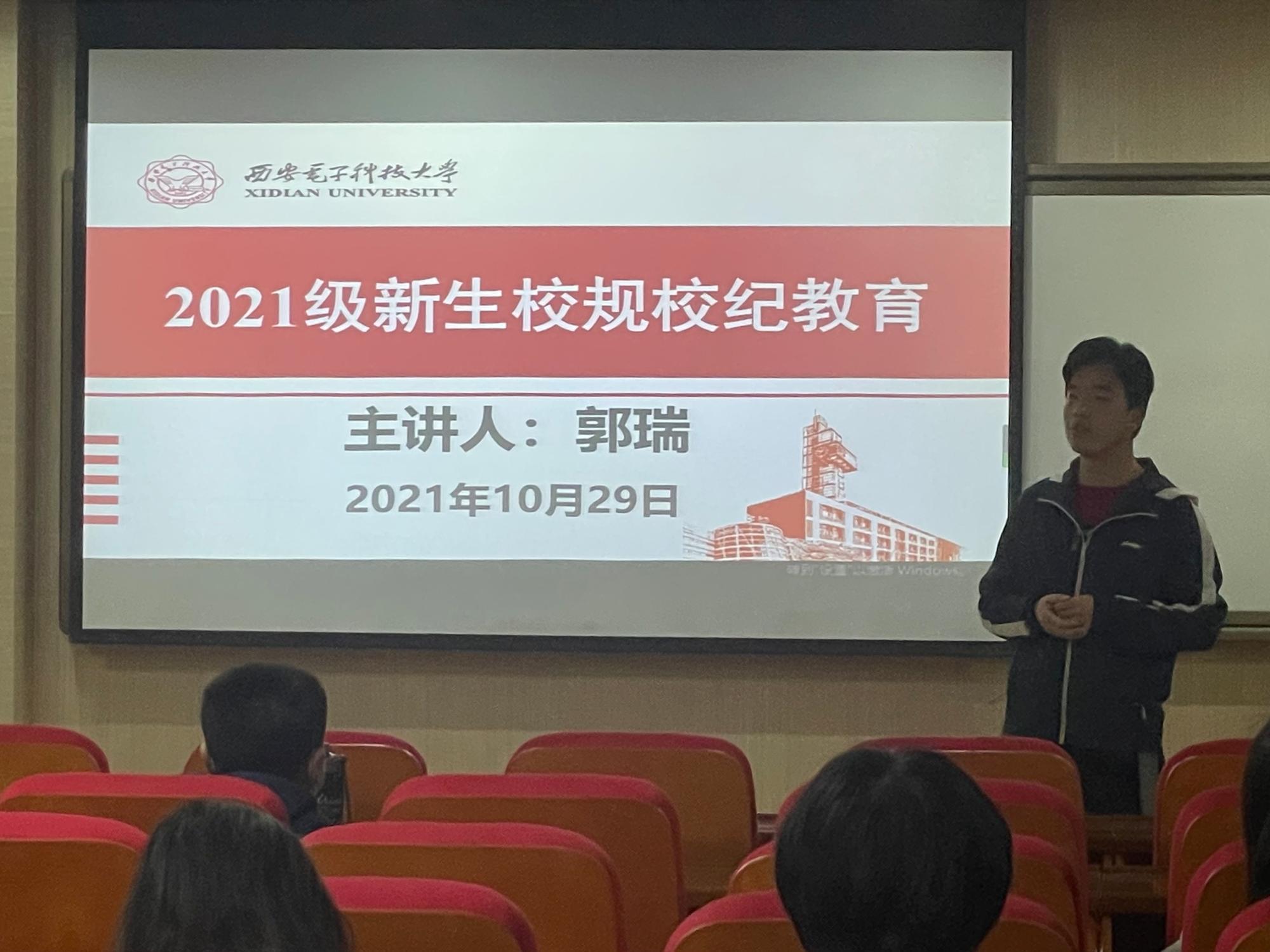 “不学礼,无以立。”10月 29日,awc777万象城娱乐官网在G420召开了主题班会,开展遵纪守则主题教育。在《学生手册》线上学习与测试的基础上,辅导员郭瑞强调了其重要意义,并从教学管理、学生管理、学生服务几个板块入手,带领学生读懂学生手册,了解学校规章制度,强化自身规则意识,并鼓励同学们会后细读学生手册,从中撷取自身需要的信息,强化学习,规范自身。同学们认真聆听,对《学生手册》有了更深入的了解,收获满满,受益匪浅,并表示以后定会明理守则,遵守校规校纪,把纪律与礼仪内化于心底的沃土,外现于行动的点滴,彰显西电学生的良好风尚,以积极的精神面貌喜迎校庆。