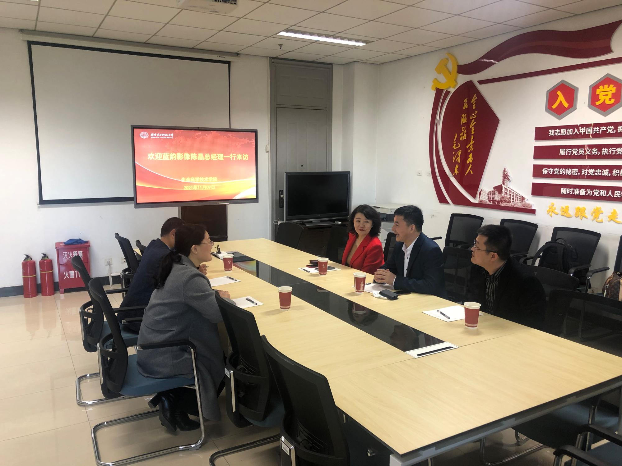 王丽玲首先代表学院对陈晶总经理一行的到来表示欢迎。她表示学院和蓝韵影像有限公司已开展过多次合作。希望通过本次交流,能够与公司进一步形成紧密合作,为企业和学校搭建产学研交流合作的桥梁。