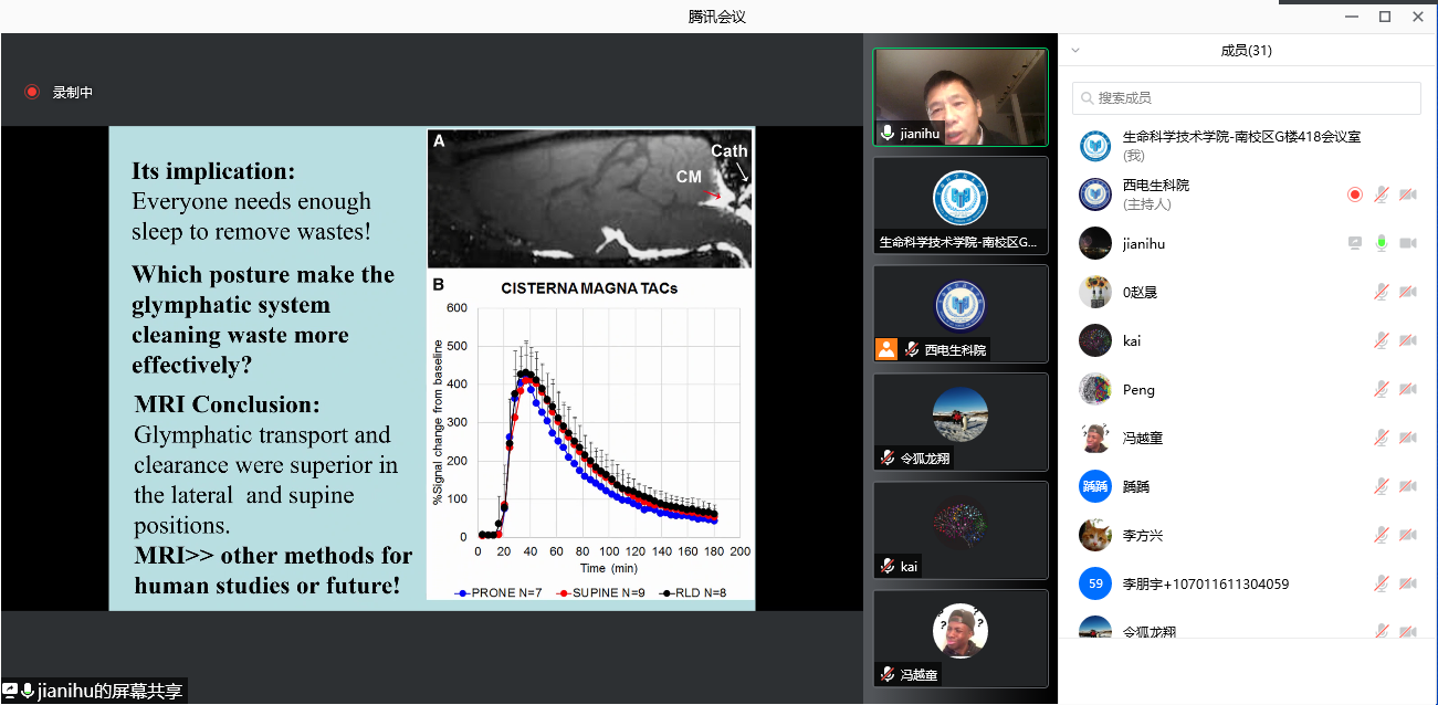 报告最后,朱守平表示胡伽尼教授的讲述非常精彩,从最初的类淋巴系统排毒机制模型,到其可能存在的缺陷,再到引入新的假设,最后通过实验证实假设并得出了令人兴奋的结论,仿佛让人置身于一场科学探索之旅。参与报告的同学们也纷纷表示此次报告内容新颖,自己大开眼界、受益匪浅,为之后的学术研究提供了一个新的方向和思路。