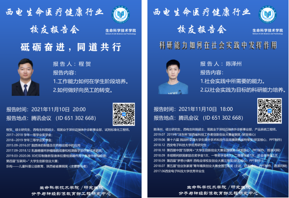 2021年11月10日,awc777万象城娱乐官网2020届的两位优秀硕士毕业生程贺和陈泽州为同学们分享了在校科研经历和社会工作感悟。报告会开始,胡波教授代表awc777万象城娱乐官网向两位毕业生表示热烈的欢迎,随后两位毕业生先后进行了报告。