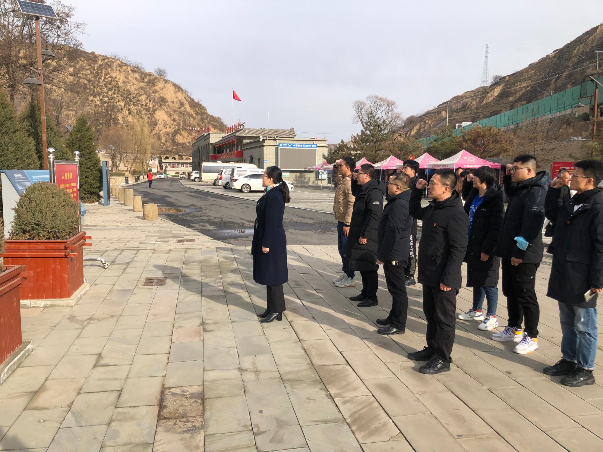 在习仲勋纪念碑前,王丽玲带领党员同志们面对鲜红的党旗,高举右拳,重温入党誓词,勿忘初心使命。