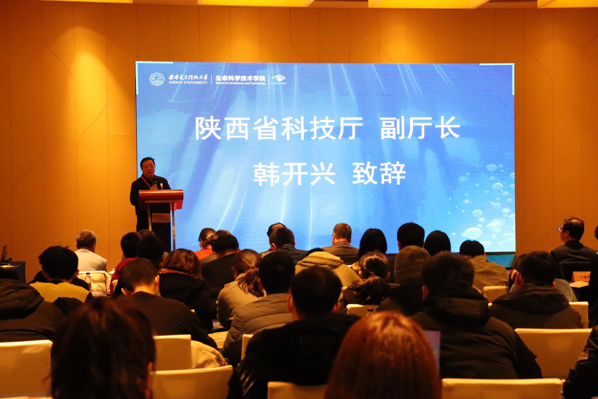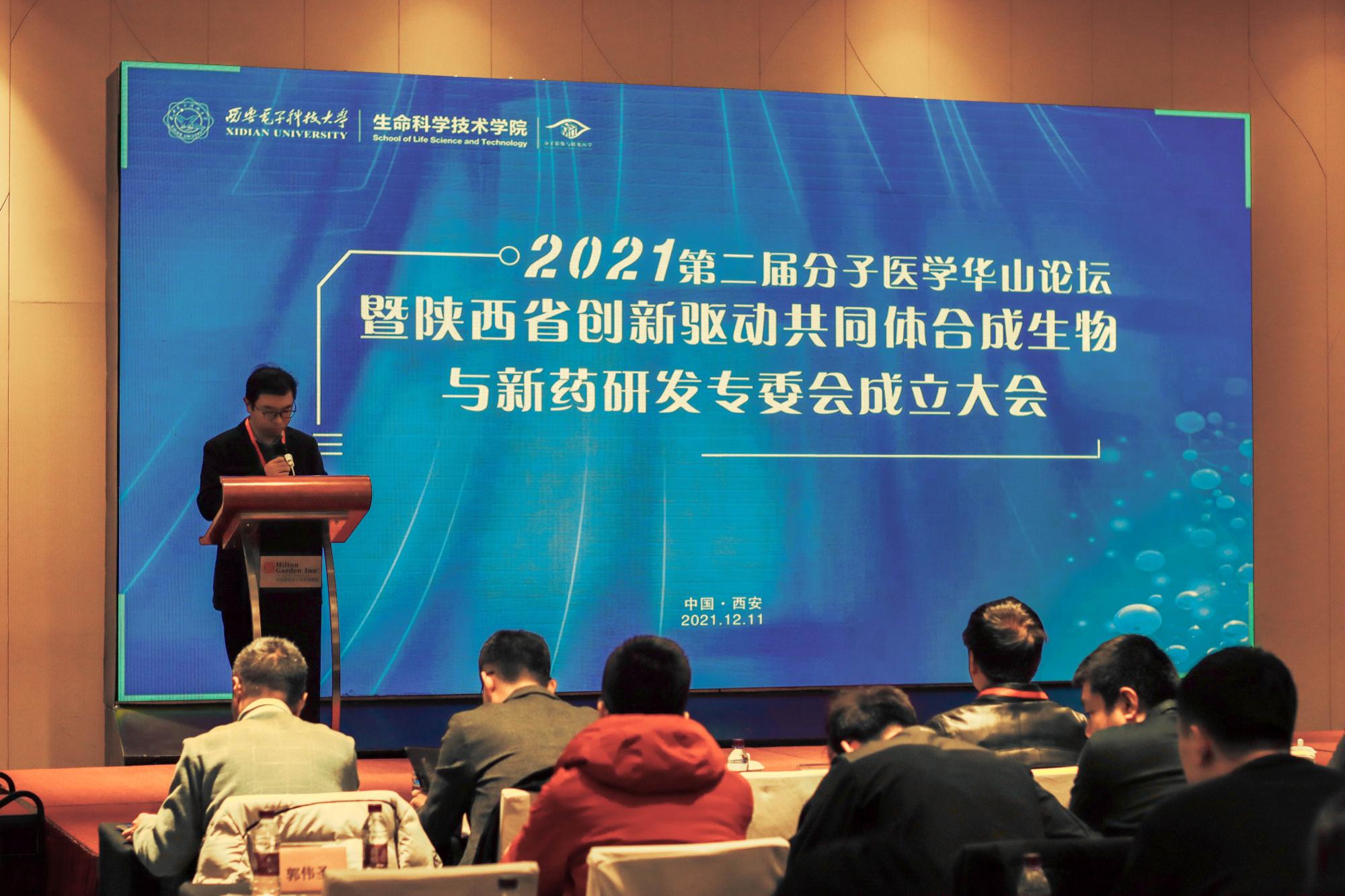 为促进创新链、产业链深度融合,加速分子医学、合成生物学科领域深度交叉与创新发展,探索高校科技成果转化范式,推动基础研究成果服务于人民健康、有效解决我国医药领域面临的‘卡脖子’问题,12月11日,“第二届分子医学华山论坛”暨“陕西省创新驱动共同体合成生物与新药研发专委会成立大会”在高新区希尔顿花园酒店隆重举行。本次大会由awc777万象城娱乐官网副院长、合成生物与新药研发专委会主任委员王忠良教授主持,陕西省科学技术厅副厅长韩开兴,西安交通大学第一附属医院王怀宇主任、空军军医大学西京医院秦卫军主任、华东师范大学二级教授叶海峰、陕西师范大学生命科学学院院长夏海滨、中科院上海药物研究所研究员于海军等来自医院、高校、科研院所的学者专家,以及80余名青年学者、企业代表和研究生参加了大会。