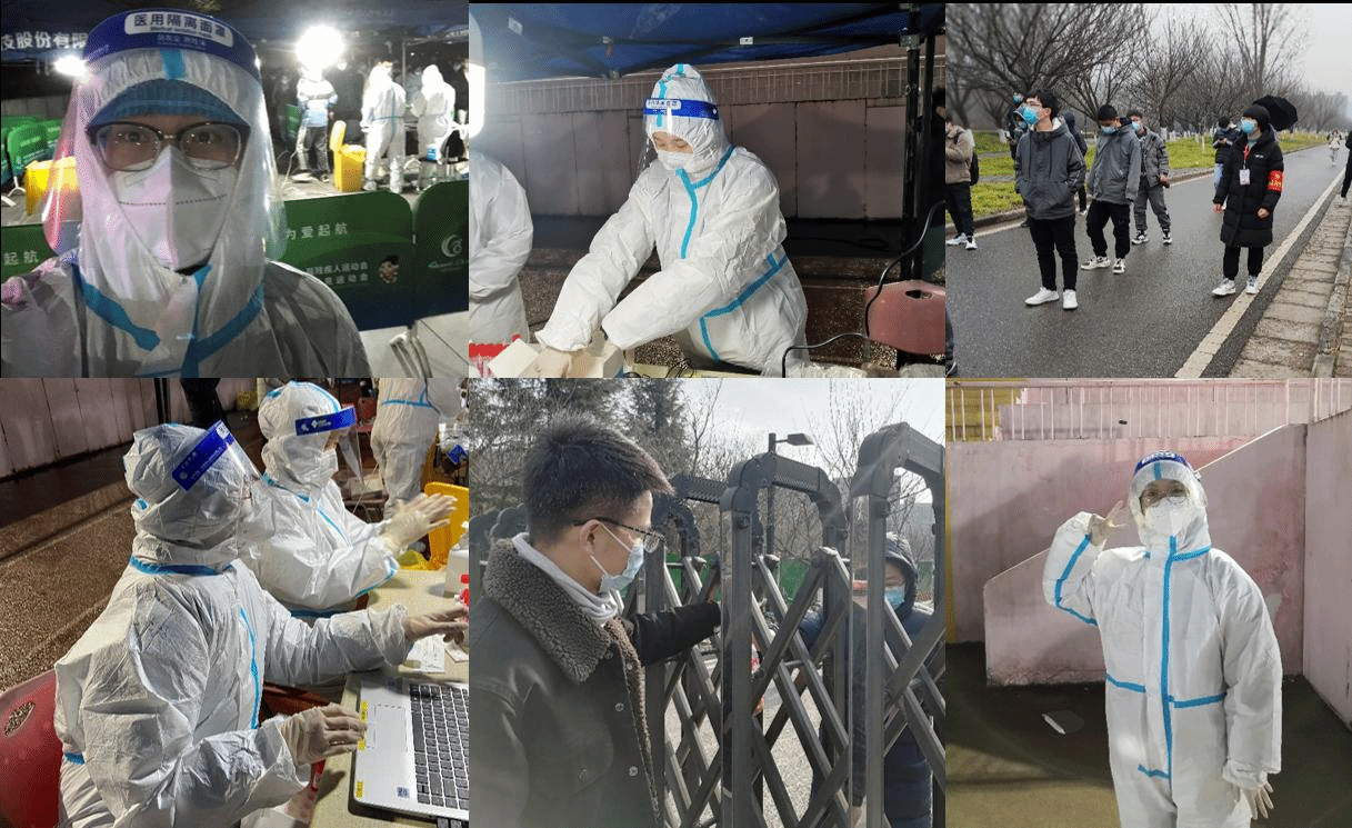为助力疫情防控,先进医学影像党支部积极响应学院党委号召,鼓励广大师生投身疫情防控阻击战中,支部成员奋勇当先,积极报名参加学院疫情防控先锋队,短短20分钟内,志愿者报名人数达二十多人。支部学生党员夏冉同学、入党积极分子李奇烛同学、课题组关慧迪、张鹏源同学化身抗疫先锋“大白”,在寒风中承担起核酸检测信息录入工作;学生党员王其滨同学主动参与给家属区居家人员送餐工作;教师党员詹勇华同志奔赴一线,投身封控区考生接送工作;团队教师曾琦副教授在北校区社区被确定为重点地区需每天开展核酸检测而人手紧缺的情况下,毅然选择参加志愿服务,参与核酸检测组信息录入工作。志愿者们以“奋斗者”姿态践行战疫誓言,为疫情防控构筑一道道坚实屏障,为打赢疫情阻击战贡献一份绵薄力量。