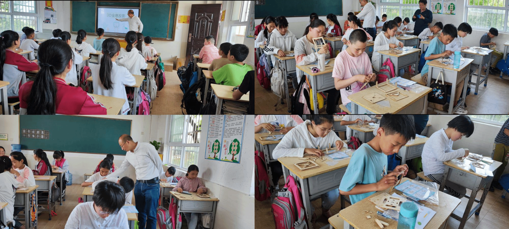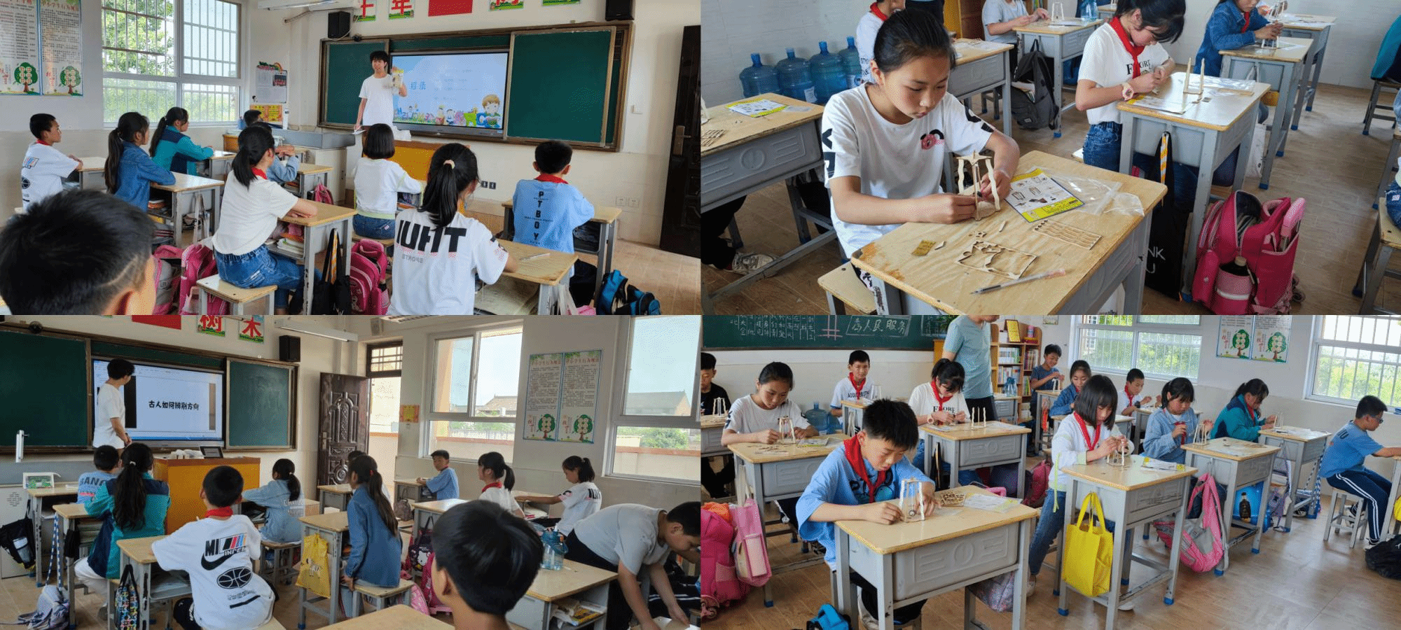 5月20日中午,经过一个半小时的路程,乐构团队到达老堡子村小学,随后团队成员兵分四路,为三年级、四年级、五年级和六年级的学生们开展科普课程。