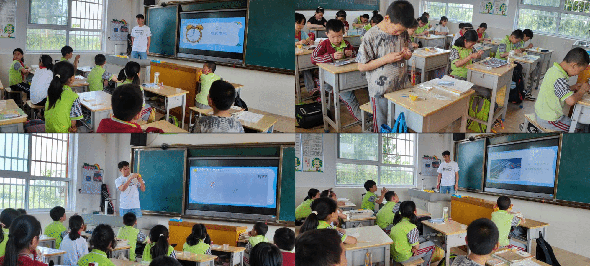 四年级开展了“水果电池”科普实验课程,课程通过现代生活中处处需要电来开启,然后主讲老师向同学们讲解生活用电从何处而来以及人类当今主要使用的和未来能大规模使用的发电方式,进而又通过电力需要储存引入到本次课程的重点——水果电池。随后老师详细地给同学们讲解了水果电池的原理,然后带领学生使用金属片、柠檬、电子表等实验材料来自己制作水果电池。