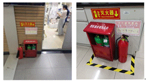 针对灭火器位于实验室外,为规范灭火器的正确放置与使用,杨老师对实验室全体成员反复强调灭火器在实验室安全中的重要性,指导实验员将其放到合适位置。
