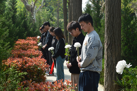 青山埋忠骨,碧血染旗帜。早上9时,全体支部成员佩戴党徽,手持鲜花,进入西安烈士陵园。随后,在英勇不屈的西安九烈士、民主斗士杜斌丞、陕北才子曹力如墓碑前,所有同志肃静立正,本科生党支部书记王琦俐宣读悼念词,随后,支部成员为革命烈士鞠躬默哀,并向其敬献鲜花,大家共同追思先烈们艰苦奋斗的革命历程,表达对英烈们的无限敬意与怀念之情。