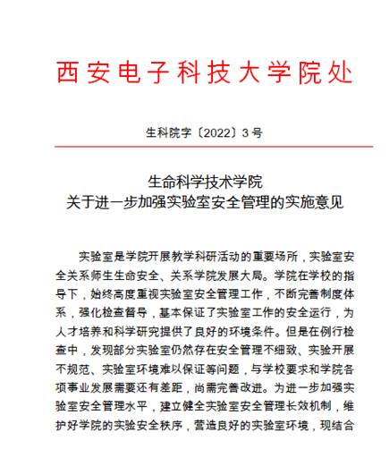 实验室是实验教学的主要阵地,是科学研究的重要场所,做好实验室安全管理工作,就是为学校人才培养和科学研究做出重要贡献。生科院将以学习贯彻习近平新时代中国特色社会主义思想主题教育为契机,强化安全生产,继续落实党政主要负责人是实验室安全的第一责任人,坚持一切工作都以安全稳定为前提,坚持问题导向,一如既往的抓实、抓细、抓好实验室安全工作,为学校“双一流”建设贡献生科力量。