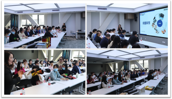 最后,西安天隆人力资源部袁莹总监对万象城师生进行公司宣讲,详细介绍了公司文化、员工福利、招聘需求等,并现场为大家解疑答惑。关于同学们比较关心的专业选择、个人发展规划、实习经验、研究方向等问题,袁莹总监均给出了详细而认真的解答。