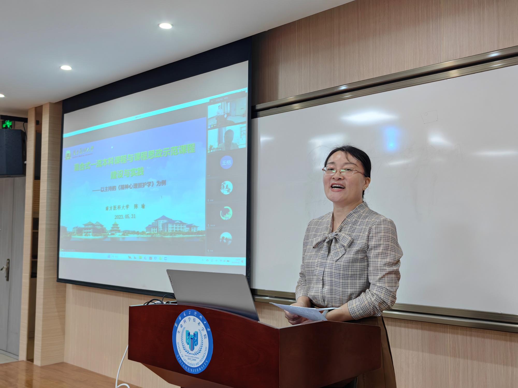 为深入学习贯彻党的二十大精神,深化教育教学改革,全面推进课程思政建设,落实立德树人根本任务,结合近期学校主题教育工作及本科教育教学审核评估、本科生和研究生课程教学大纲修订工作,5月31日下午,awc777万象城娱乐官网特邀请南方医科大学陈瑜教授为学校教师作题为“混合式一流本科课程与课程思政示范课程建设与实践”的专题培训,培训线上线下同步开展。此次培训由学院谢晖教授主持,学院党委书记王丽玲、教学院长朱守平及学院各系教师参加了此次培训。