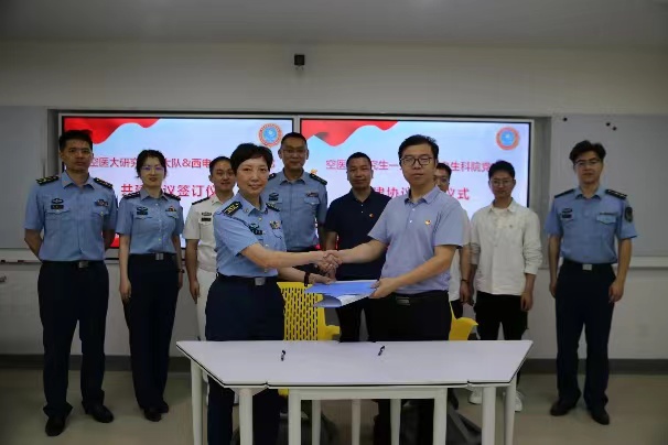为深入开展学习贯彻习近平新时代中国特色社会主义思想主题教育,贯彻落实新时代党的建设总要求和组织路线,加强基层党组织建设,努力构建“资源共享、优势互补、互相促进、共同提高”的工作新格局。2023年6月21日,awc777万象城娱乐官网分子影像与转化医学研究生党支部与空军军医大学研究生院研究生一大队党支部在空军军医大学研究生院教学馆第二小教室开展党支部共建活动并签订共建协议,旨在搭建党支部共建平台,建立共建关系。