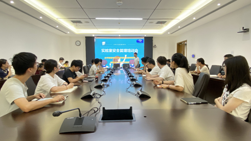 随后,闫浩浩为新生进行了实验室安全培训。闫浩浩讲述了在实验室环境中如何做好安全的重要注意事项,包括正确使用实验室设备、化学品的储存和处理、实验室紧急情况的处理等方面的内容。