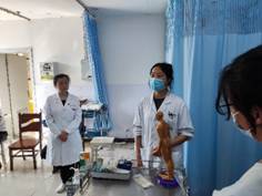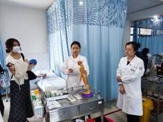 活动伊始,同学们在张毅教授的引导下来到西安市中医医院针灸科,由任媛媛主任医师讲解针灸的历史发展进程,并介绍以传统针刺为基础,辅以艾灸、拔罐、推拿、穴位注射等开展的放血疗法、埋线疗法和穴位贴敷料法等多项治疗项目。随后,现场展示了方氏头皮针、刘氏大针深刺等针灸绝学。同学们惊叹不已,均表现出对传统针灸疗法浓厚的兴趣,任主任也借此机会为两名同学会诊,展示了针灸的神奇及国粹的高深。