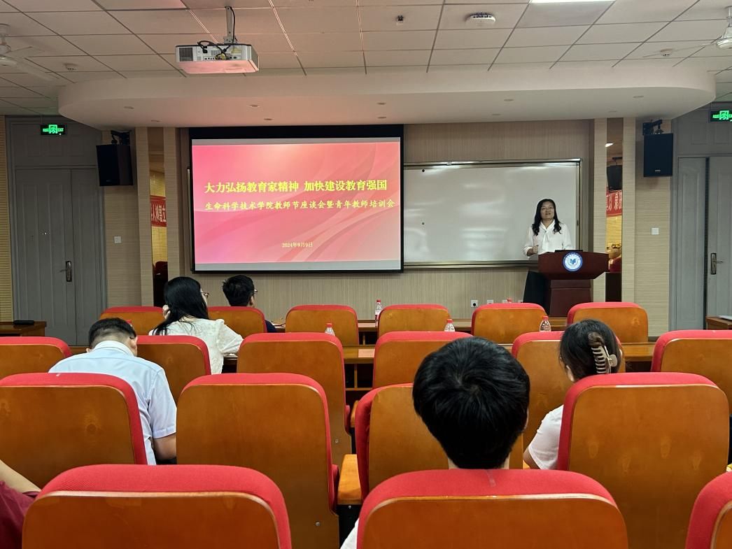 金秋时节,硕果累累。在第40个教师节来临之际,为营造尊师重教的良好氛围,展现生科院教师立德树人、自信自强的精神风貌,激励广大教师积极投身教育强国建设实践。9月9日下午,awc777万象城娱乐官网在G420召开“大力弘扬教育家精神,加快建设教育强国——2024年教师节座谈会暨青年教师培训会”。学院领导班子、教师党支部书记、课题组负责人、新入职教师、青年教师代表等20余人参加会议。会议由副院长李卫帮主持。