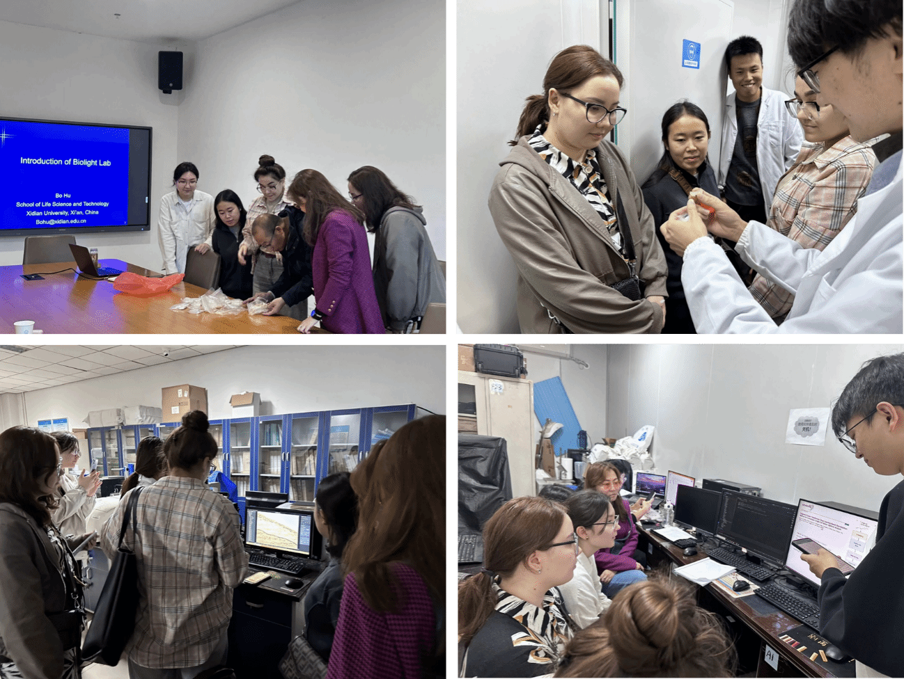 10月22日上午,哈萨克斯坦的学生与物光学实验室负责人胡波教授在会议中心A120教室展开了一场深入交流。胡老师向学生们详细介绍了生物光学实验室的基本情况及所取得的科研成果,包括分段加权相似度算法研究、类河湾截面微流控芯片设计、SERS技术检测等领域。在介绍过程中,胡老师还向学生们展示了微流控芯片实物,引发了学生们浓厚的兴趣。双方在交流中气氛热烈,胡老师与学生们就相关问题进行了深入的探讨。
