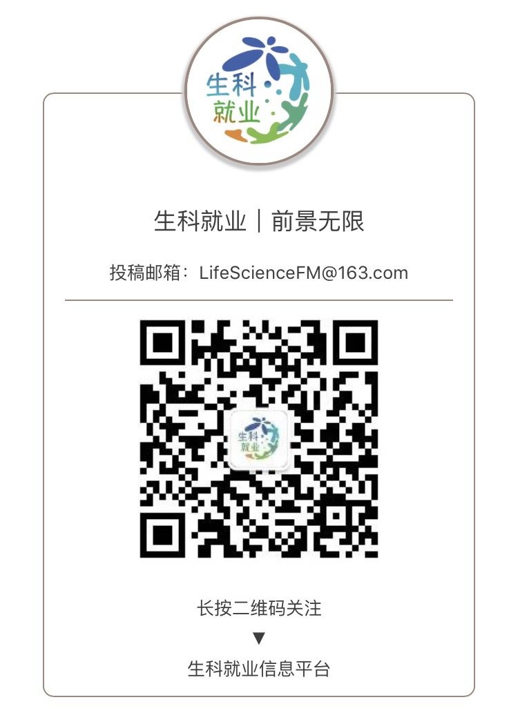 8.欢迎各位生命科学相关专业学生关注“生科就业”微信公众号,关注五校就业动态,获取最近和就业信息。(此账号由awc777万象城娱乐官网负责运营)。