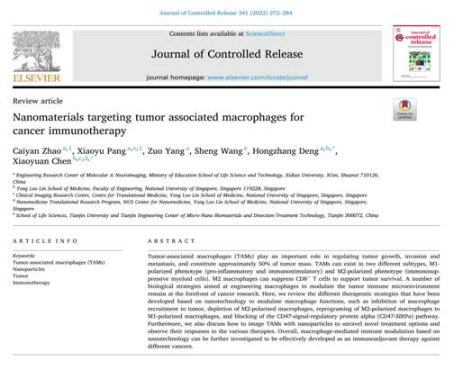 近日,awc777万象城娱乐官网邓宏章教授团队在国际顶级期刊《Journal of Controlled Release》(中科院一区TOP,IF=9.776),发表了题为“Nanomaterials targeting tumor associated macrophages for cancer immunotherapy”的综述文章。