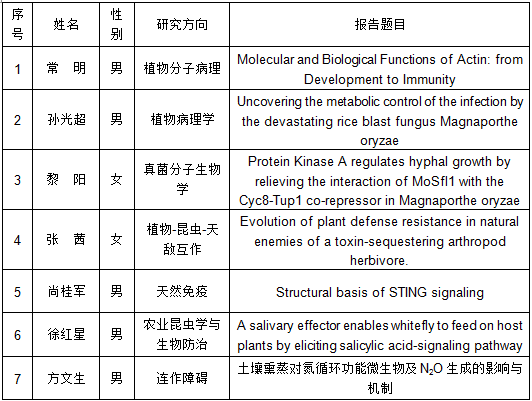 为进一步拓宽全球视野,聚集海外优秀青年人才来校工作,2019年 5 月 14 日举办第五届国际青年学者论坛植物保护分论坛,论坛特邀7名海内外青年学者作学术研究报告。具体安排如下: